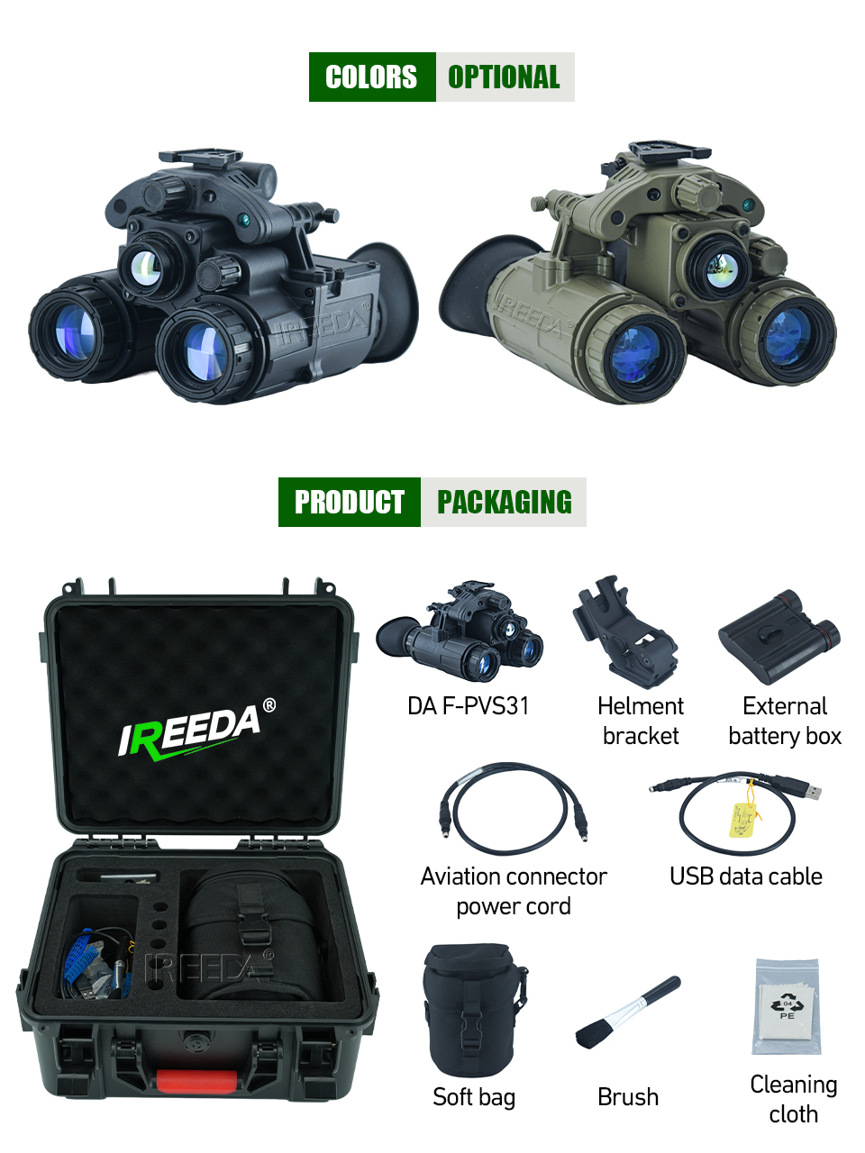 DA F-PVS31 (Fusion Binocular) is a binocular night vision device combining the best features of both worlds in one device using analog residual light amplifiers and a digital thermal imaging sensor. It is equipped with a new generation of night vision fusion technology, in which three-dimensional binocular imaging enables the user to detect targets more effectively and distinguish threats more quickly.