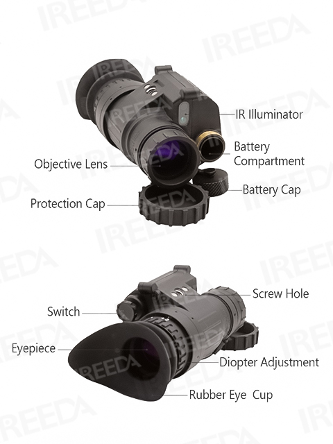 PVS14: This is a monocular night vision device, meaning it has a single eyepiece and objective lens. It allows for one eye to have night vision, while the other can maintain natural vision, providing better depth perception and situational awareness.