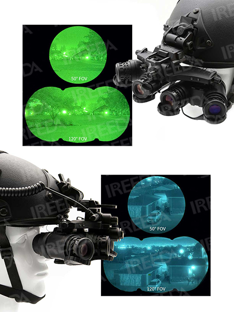 Four-eyed night vision devices typically offer an expanded 120-degree field of view or more, compared to the standard 40-degree FOV in traditional binocular or monocular night vision systems. This provides users with a much broader view of their surroundings, reducing blind spots and increasing situational awareness.