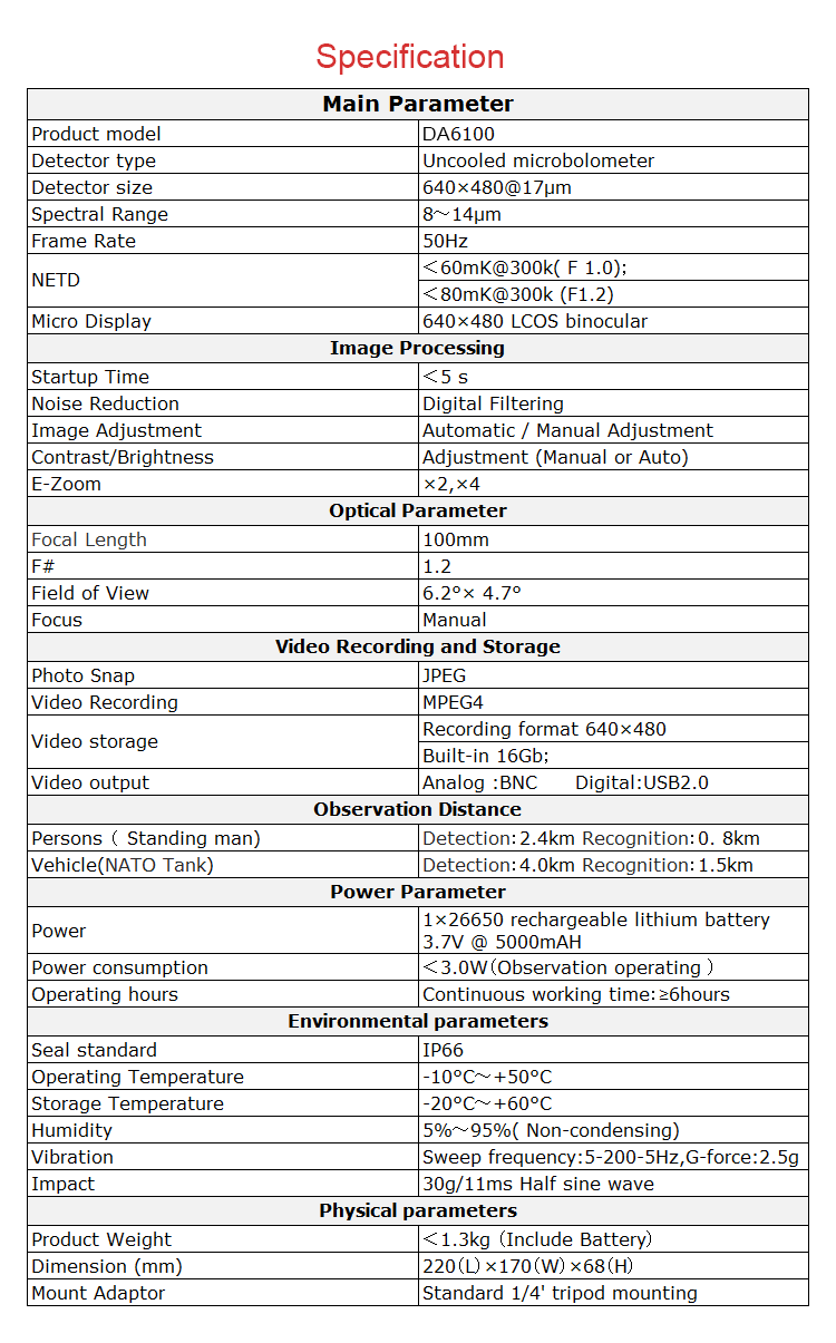 DA-6100B is a handheld thermal binocular device that uses the latest low-power, compact, uncooled